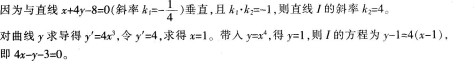 若曲线y=x4的一条切线I与直线x+4y-8=0垂直,求切线I的方程。
