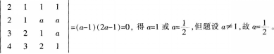 设行向量组(2,1,1,1),(2,1,a,a),(3,2,1,a),(4,3,2,1)线性相关,且a≠l,求a。