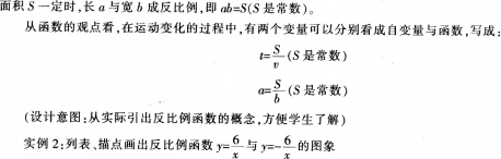 如上例,当路程S是常数时,时间T就是v的反比例函数。当矩形面积.S是常数时,长a是宽b的反比例函数。