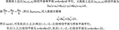 求曲面x2+2y2+3z2=21的切平面,使它平行于平面x+4y+6z=0。