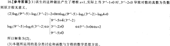 案例:某教师在对基本初等函数进行教学时,给学生出了如下一道练习题: 问题: (1)指出该生解题过程中的错误,分析其错误原因;(6分) (2)给出你的正确解答;(7分) (3)指出你在解题时运用的数学思想方法。(7分)