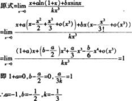 设函数f(χ)=χ+aln(1+χ)+bχsinχ,g(χ)=kχ3,若f(χ)与g(χ)在χ→0是等价无穷小,求a,b,k的值。
