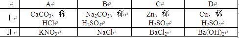 如右图所示装置进行实验(图中铁架台等仪器均已略去)。在Ⅰ中加入试剂后,塞紧橡皮塞,立即打开止水夹,Ⅱ中有气泡冒出;一段时间后关闭止水夹,Ⅱ中液面上升,溶液由无色变为浑浊。符合以上实验现象的Ⅰ和Ⅱ中应加入的试剂是