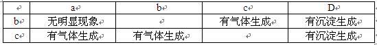 现有a、b、c、d四种无色溶液,分别是碳酸钠溶液、硫酸、氯化钡溶液、盐酸中的一种。根据下表中它们两两间相互反应的实验记录,推断a、b、c、d的顺序正确的是
