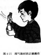 演示:闻氯气时应该用手轻轻地在瓶口扇动,使极少量的氯气飘进鼻孔.