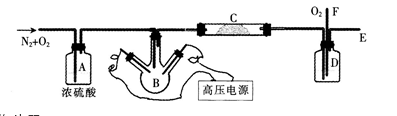 ①将氮气和氧气按l:1的比例混合经容器A.用浓硫酸干燥后进人反应器B。