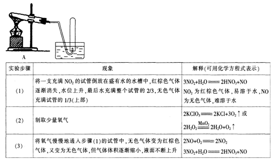 【实验】向一小集气瓶的N02气体中滴人几滴水,振荡,观察现象。