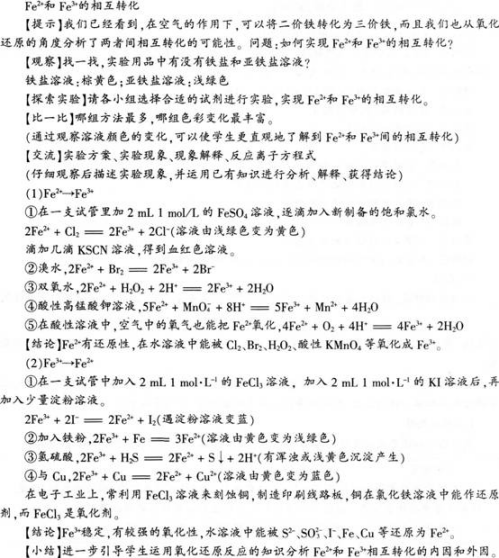 下面是某化学教师关于“Fe3+和Fe2+的相互转化”课堂教学实录片段。