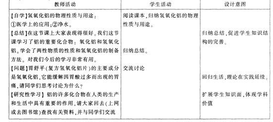 (2)完成“铝的重要化合物’’的教学设计片段,内容包括教学目标、教学方法和教学过程。