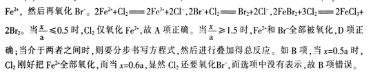 (2)错解原因:学生对Fe2+及Br一的还原性的强弱未掌握,不能正确判断不同物质的量的Cl2所能氧化的离子,造成离子方程式书写错误。