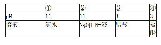 【试题】现有室温下的四种溶液,其pH如表1所示,下列有关叙述不正确的是()。