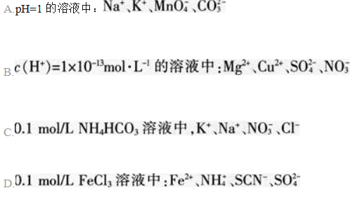 <p>25℃时,下列各组离子在指定溶液中一定能大量共存的是()。 <img alt="" src="https://learn