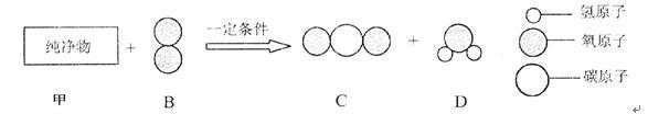 (3)若甲可用于焊接或切割金属,把一定质量的纯净物A和40g的纯净物B在一定条件下按下图所示充分反应,当B物质反应完时,可生成44gC物质和9gD物质。