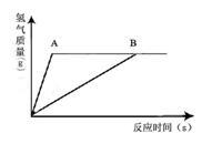 某课外活动小组为探究实验室制取氢气的方案,分别用金属 A、B跟质量相同、质量分数相同的稀硫酸反应,经实验发现:生成氢气的质量与反应时间有下图所示关系。 分析图像得到的以下结论中,不合理的是