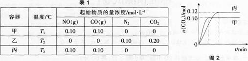一定温度下,在三个容积均为2.0L的恒容密闭容器中发生反应: 各容器中起始物质的量浓度与反应温度如表1所示,反应过程中甲、丙容器中C02的物质的量随时间变化关系如图2所示: 下列说法正确的是()