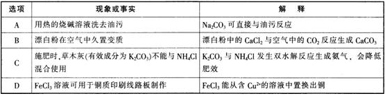 <p>化学与社会、生活密切相关。对下列现象或事实的解释正确的是( )。 <img alt="" src="https://l