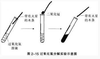 (2)向上述试管中加入少量二氧化锰,把带火星的木条伸入试管。观察现象(如图2一15)。