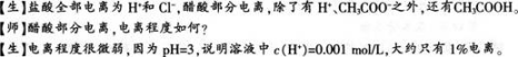 【师】(演示:分别测定盐酸和醋酸的pH)盐酸的pH为1,醋酸的pH为3。通过这个实验,你对盐酸和醋酸又有哪些新的认识?