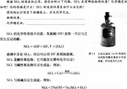 材料三某版本高中实验教科书《化学1》中“二氧化硅和硅酸”的片段: