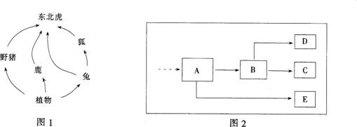 (4)图2是能量流经东北虎种群的示意图,其中A表示东北虎的摄入量.B表示东北虎的同化量。那么D、E依次表示东北虎的__________。