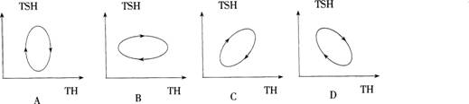 下图能正确反映人体内促甲状腺激素(TSH)与甲状腺激素(TH)含量变化的是( )。