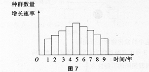 图7表示某物种迁入新环境后,种群数量增长速率(平均值)随时间(单位:年)的变化关系。经调查在第5年时该种群的种群数量为200只。下列有关叙述正确的是()。
