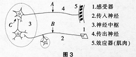 某种药物可以阻断蟾蜍屈肌反射活动。图3为该反射弧的模式图。 A、B为神经纤维上的实验位点,C为突触间隙。下列实验结果中,能够证明这种药物“在神经系统中仅对神经细胞间的兴奋传递有阻断作用”的是()。 ①将药物放在 A,刺激 B,肌肉收缩 ②将药物放在 B,刺激 A,肌肉收缩 ③将药物放在 C,刺激 B,肌肉不收缩 ④将药物放在 C,刺激 A,肌肉收缩