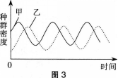 某水池有浮游动物和藻类两个种群,其种群密度随时问变化的趋势如图3,若向水池中投放大量专食浮游动物的某种鱼(丙),一段时期后,该水池甲、乙、丙三个种群中仅剩一个种群。下列关于该水池中上述三个种群关系及变化的叙述,正确的是( )。