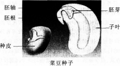 ⑤出示设计的挂图,引导大家总结菜豆种子的结构。