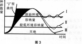 图3中,曲线I、Ⅱ、Ⅲ分别表示某野生动物种群数量超过环境容纳量后,其未来种群数量变化三种可能的情况。