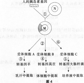 如图4表示运用基因工程技术生产胰岛素的三条途径。据图结合所学知识回答下列问题: