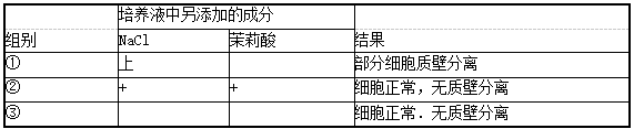 将成熟胡杨细胞放在三种不同培养液中连续培养三天,结果如下表,下列叙述正确的是() 注:“+”表不有添加,“一”表示无添加