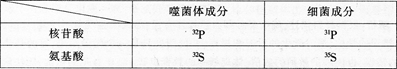 某科学家做“噬菌体侵染细菌实验”时,分别用同位素32P和35S做了标记,见下表: