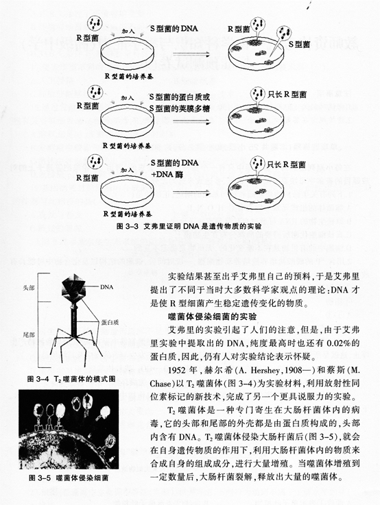 “DNA是主要的遗传物质”是人民教育出版社高中《生物》必修2第三章第一节的内容。请依据所给的部分教科书内容,完成相应的教学设计。(材料见后两页)