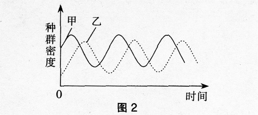 某水池有浮游动物和藻类两个种群,其种群密度随时间变化的趋势如图2,若向水池中投放大量专食浮游动物的某种鱼(丙),一段时期后,该水池甲、乙、丙三个种群中仅剩一个种群。下列关于该水池中上述三个种群关系及变化的叙述。正确的是()。