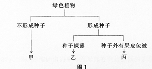 图1表示葫芦藓、肾蕨、苏铁和木瓜的分类,其中乙、丙所代表的植物分别是()。