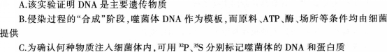 <p>噬菌体是一类细菌病毒。下列关于噬菌体侵染细菌实验的相关叙述中,不正确的是( )。 <img alt="" src="h