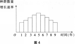 图4表示某物种迁入新环境后,种群数量增长速率(平均值)随时间(单位:年)的变化关系。经调查在第5年时该种群的种群数量为200只。下列有关叙述正确的是( )。