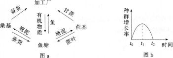 下图a为建立的人工生态系统示意图,b为放养在其中的某种鱼的种群数量增长率随时间的变化曲线。回答下列问题: