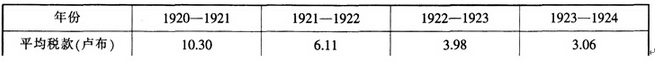 下表据《一个大国的崛起与崩溃》相关内容编制。阅读该表,造成苏俄(联)农民年平均税款变化的主要原因是( )。
