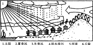 根据下图表示我国某乡村聚落地理环境示意图。 据图中信息,关于该聚落与自然环境关系的叙述,错误的是( )。