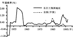 根据读全国(中国)和长江三角洲地区近50年耕地年递减率变化图, 关于全国及长江三角洲地区耕地数量的变化情况,叙述正确的是( )。