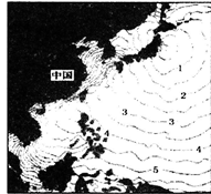 根据下图为2011年日本大地震引发海啸传播的等时线分布图(单位:小时)。 我国东海海域等时线分布较密集,说明海啸在该海域的传播速度( )。