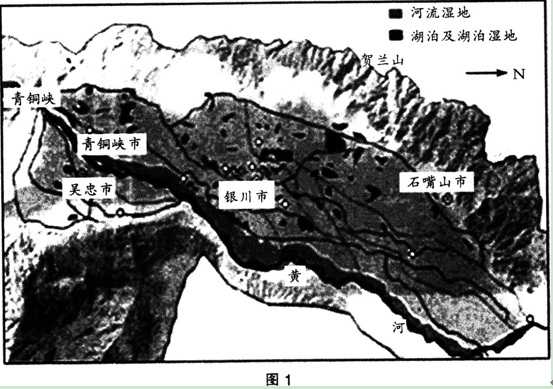 (1)结合材料一分析说明银川湖泊湿地众多的原因。(6分)