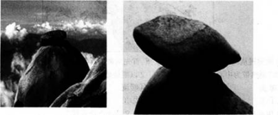 <p>下面地貌由燕山期花岗岩组成,左图为飞来峰,其上的飞来石如天外来客(右图),读图回答6~7题。 <img alt="" s