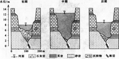 下图示意某河谷断面经历的一次洪水过程。读图,回答第题。 该河谷( )。查看材料