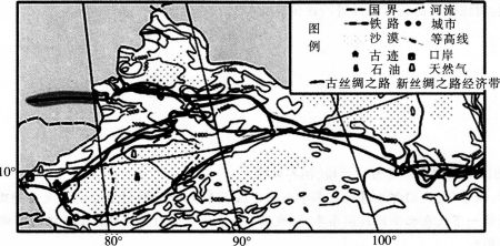 (2)简述图中“丝绸之路经济带”发展的有利社会经济条件。(6分)