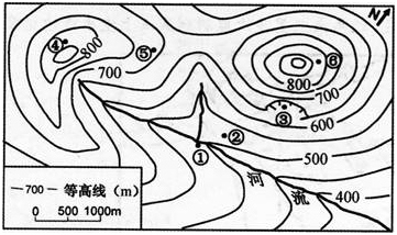 5月初,几位“驴友”到我国东南部某山区旅游。下图为该山区地形示意图,图中①~⑥处为露营和观景的备选地点。