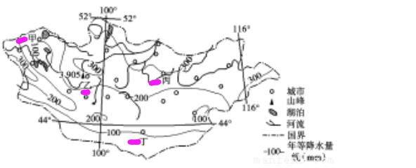 根据图示信息推断,甲、乙、丙、丁四城市中,人口数量最多的应是( )。查看材料