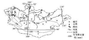 D.降水稀少且呈带状分布,使该国植被景观东西延伸、南北更替